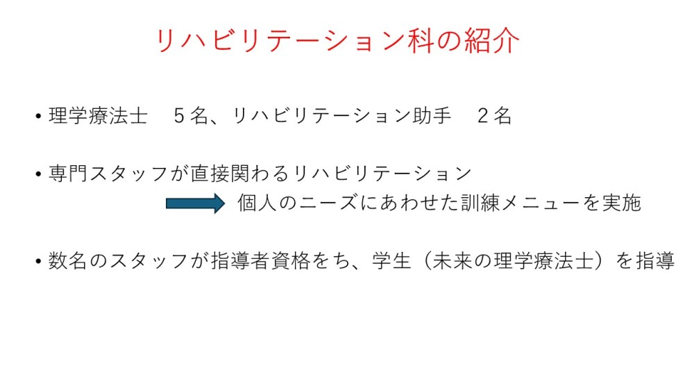 リハビリテーション科の紹介 ニュース 更新日:2026/01/29 リハビリテーションについてのご案内です。どんなことをしているのだろうか?どういう疾患が適応になるのだろうか?皆様の理解を深めるための一つのきっかけになれば幸いです。